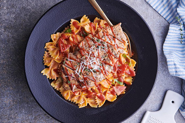 Grilled steak with tomatoes, peppers and celery